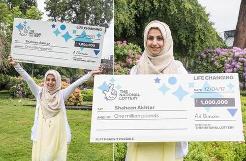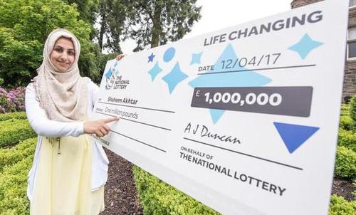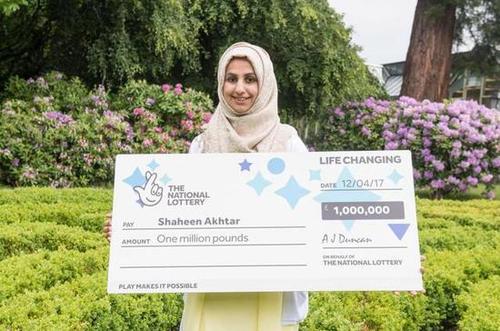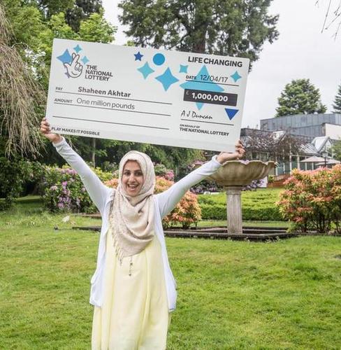 这位有着三个孩子的家庭主妇名叫Shaheen Akhtar,今年31岁,据她讲当时只是很随意的买了张彩票,甚至都没有十分在意买的是什么号码,买回来后就一直放在手提包里。直到几个星期后,她看到电视才发现自己中奖了,Shaheen还跑到买彩票的地方对照了好几遍,才确认自己中得了100万英镑的大奖。