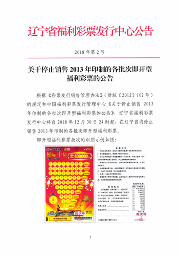 关于辽宁停售2013年印制的各批次即开型彩票公告