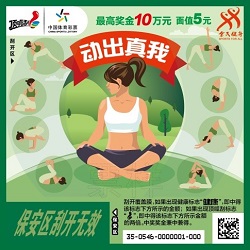 “动出真我”一套两张,单票面值5元,共有8次中奖机会,头奖10万元。两个票面以“全民健身”为主题,通过票面主形象中年男性的健身运动和年轻女性的瑜伽运动展现体育锻炼的健与美。