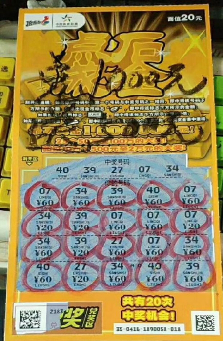 九江市区的04082体彩网点的即开票一直销售得很好,尤其是顶呱刮有新票推出,会吸引热爱体彩顶呱刮的购彩者抢购。