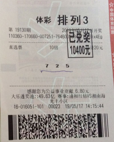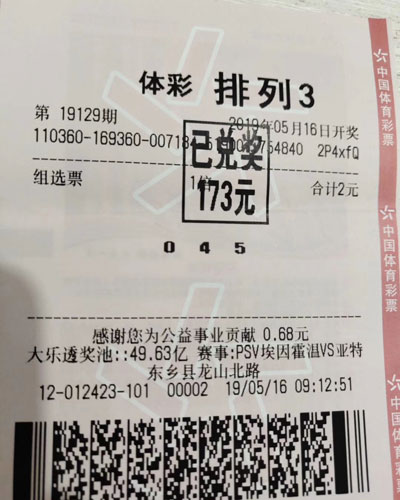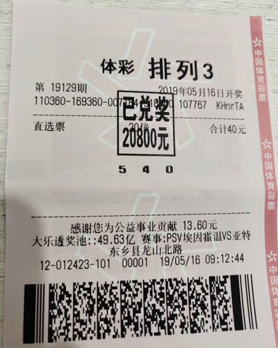 5月16日,东乡区3612012423体彩门店里中得排列3第19129期奖金近21000元,其中包括1注组选和20注直选。