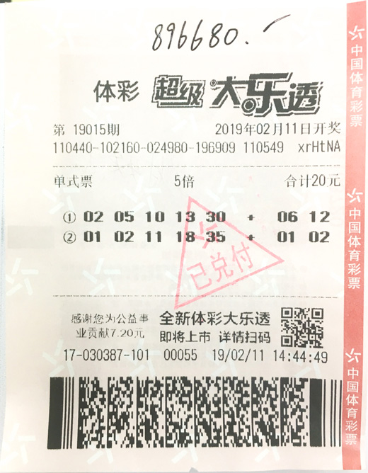 王先生是云浮人,小两口在东莞某厂打工多年,购买体育彩票才只有两年多时间。由于妻子不支持购彩,王先生每次都是偷偷买彩的。2月11日年初七,半个月没有买彩票的王先生在上班路上迫不及待地买了20元的大乐透,购买时他还让销售员快点机选,然后就去上班了。