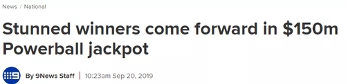 最终,今早澳媒报道:三名幸运儿瓜分了这笔巨额奖金,每人分得5000万澳元,一夜之间,澳洲又多出了3名千万富豪。