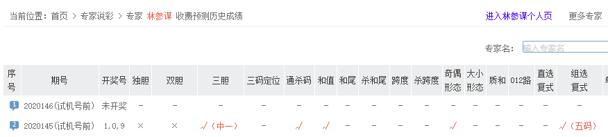林参谋五码复式命中。