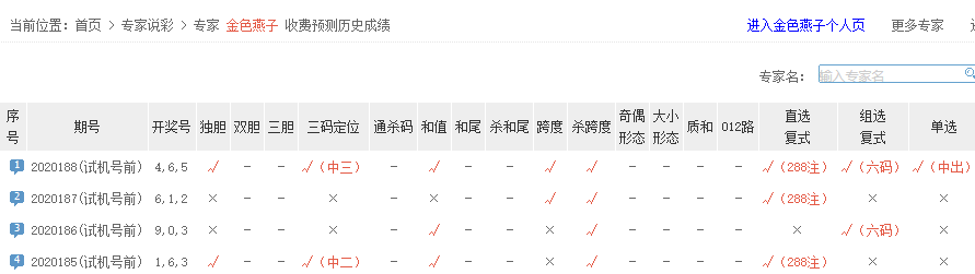 金色燕子福彩3D单选预测命中,胆码预测、六码组选复式预测也均命中。
