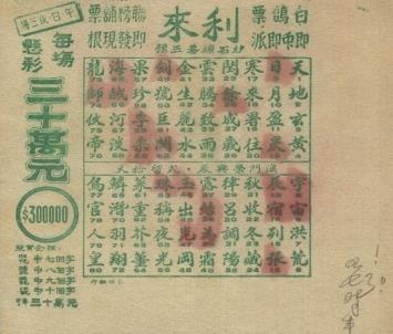 后来赌法演变为,由赌局把《千字文》前80个字印在纸上(即白鸽票),参赌者在票中圈出若干心水字号,再由赌局开出底子若干(即中奖号码),一般有五字以上相符,便可按不同等级中彩,也可投买企注(即现行包字)七个字、八个字、九个字、十个字……白鸽彩票在解放前流行甚广。风靡广州、上海、澳门等地。据闻,当今港澳地区仍有赌鸽的,其玩法则多有借鉴旧上海的玩法,但已采用了现代化的电子技术操作,彩金派发则各不相同。