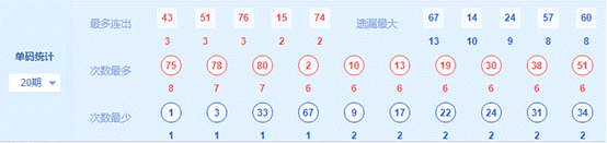 3、 最多出号分区分析:上期最多出号分区为第3区,开出9个号码,第3区号码开出重号较多,可重点关注。