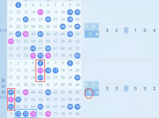 2、 最多出号行列分析:上期中最多行为第7行和第8行,均开出4个号码,最多列依然为第5列,开出4个号码。本期看好第8行和第3列开出4个号码。