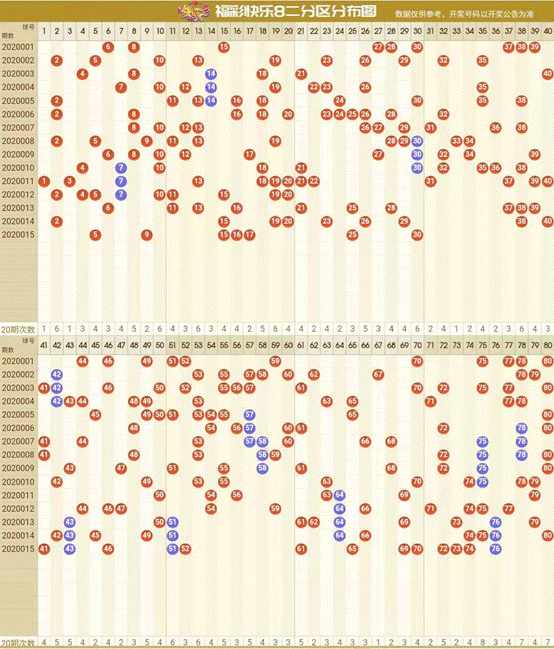 Ø 网站参考图表:综合分布图、20期号码统计图、全局80号码分布可在快乐8走势图表中可查。