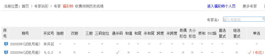 福彩师单选预测命中。