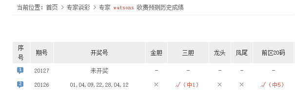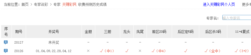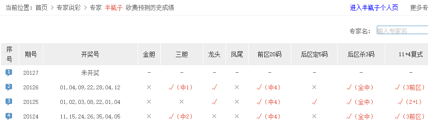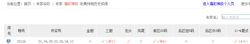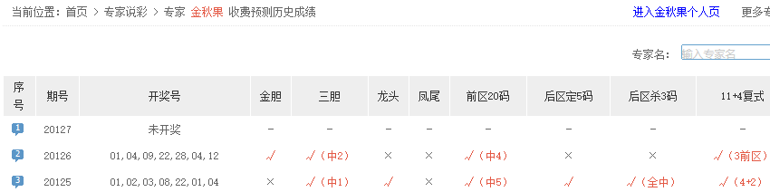 头奖专家金秋果20125期命中一等奖,20126期再中4前区。