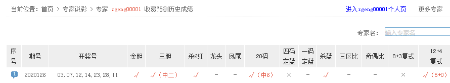 秦川牛168、zgeng00001、太白大底命中6红,12+4命中5+0。红蓝王5000000、龙行王者归来、js_sl1688、素雅红、诸葛神同中6红。