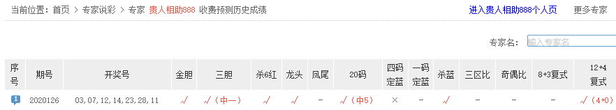 贵人相助888、福神、虎牌、13055、jd_qx1688、中奖大宝典、贵人相助888命中5红,12+4中4+0。