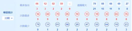 2、最多出号分区分析:上期最多出号分区为第1区,又出了7个号码,4个号码重复。