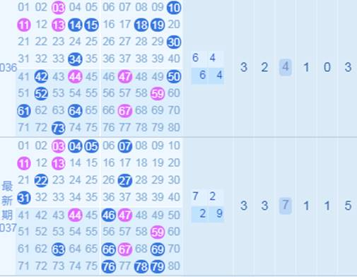3、 最多出号行列分析:本期选出如上三个可能会开出最多出号的行和列,我们可以找稳定出号较多的行列,也可以找号码变化较大的行列。最多出号行列一旦圈定,会在里面开出8个以上的号码。