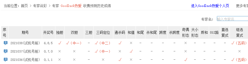 Goodluck热爱、彩民阳光、彩之外五码预测同命中。