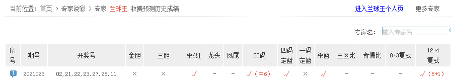 兰球王、弥勒法丝、西贝小妮同中6红1蓝。