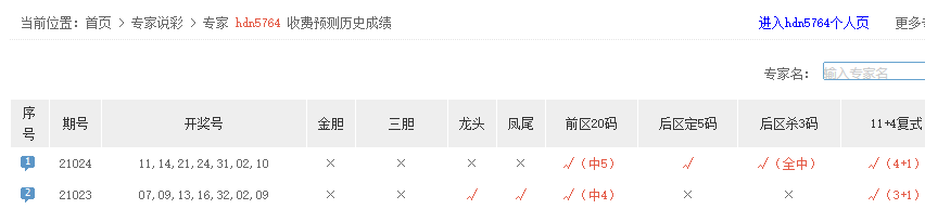hdn5764大底命中5+2,11+4揽获4+1。