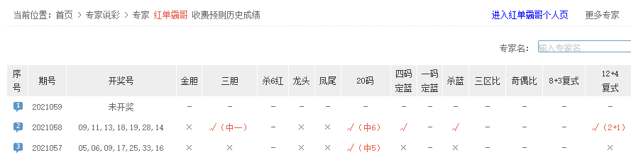红单霸哥同中6红1蓝。