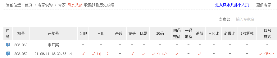 风水八卦、老张看彩、阳光金照同中6红1蓝。