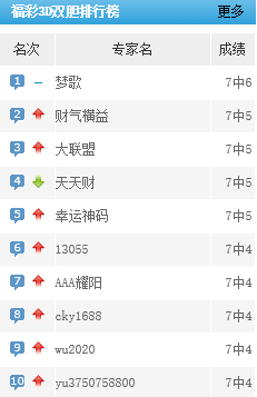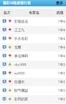 彩姐送运、江江九、乐水击彩等独胆预测近7中4。