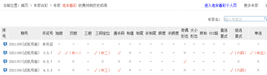 老宋看彩单选预测命中。