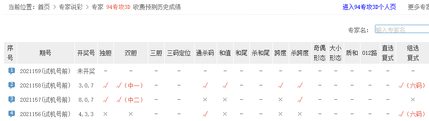 94专攻3D、wu2020、yu750758800等专家双胆预测近7中5。