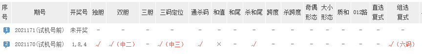 一篇方案、多维度预测。胆码、杀码、龙头、凤尾、大底,复式,单式推荐,全方位分析让选号更简单。