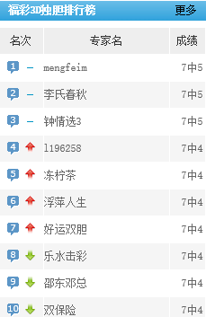 mengfeim、李氏春秋、钟情选3独胆预测近7中5。