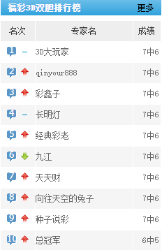 3D大玩家、qinyour888、彩鑫子等双胆预测近7中6。