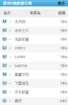天天财独胆预测近7中6。