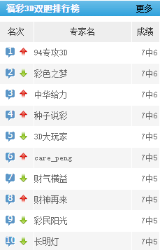 94专攻3D、彩色之梦、中华给力、种子说彩双胆预测近7中6。