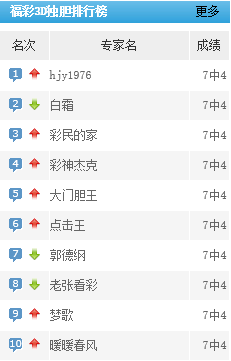 hjy1976、白霜、彩民的家等独胆预测近7中4。