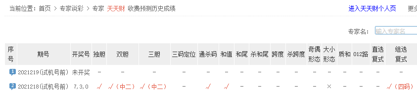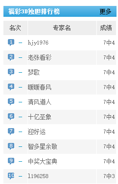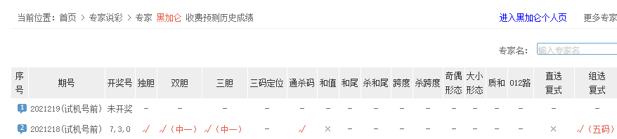hjy1976、老张看彩、梦歌等专家独胆预测近7中4。