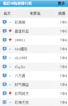 彩满楼、喜逢秋起专家独胆预测近7中5。