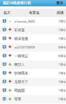 xiaoxue_8425、彩讲堂、顺泽恒通专家独胆预测近7中5。