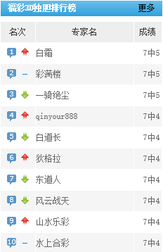白霜、彩满楼、一骑绝尘专家独胆预测近7中5。