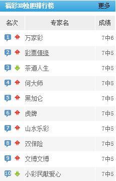 万家彩专家独胆预测近7中6。