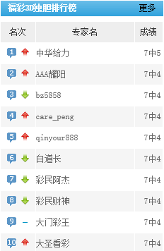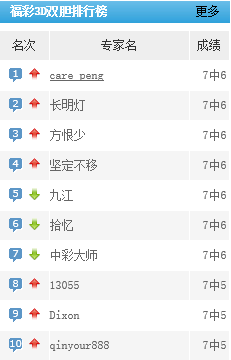 care peng、长明灯、方恨少等专家双胆预测近7中6。