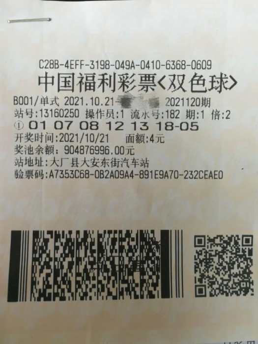 10月26日,一位80后小伙来到省福彩中心兑奖大厅,从包里拿出一张彩票要求兑奖。工作人员验证后发现,正是这张4元单式票,在21日开奖的双色球2021120期中了2注一等奖,奖金合计1053万多元。