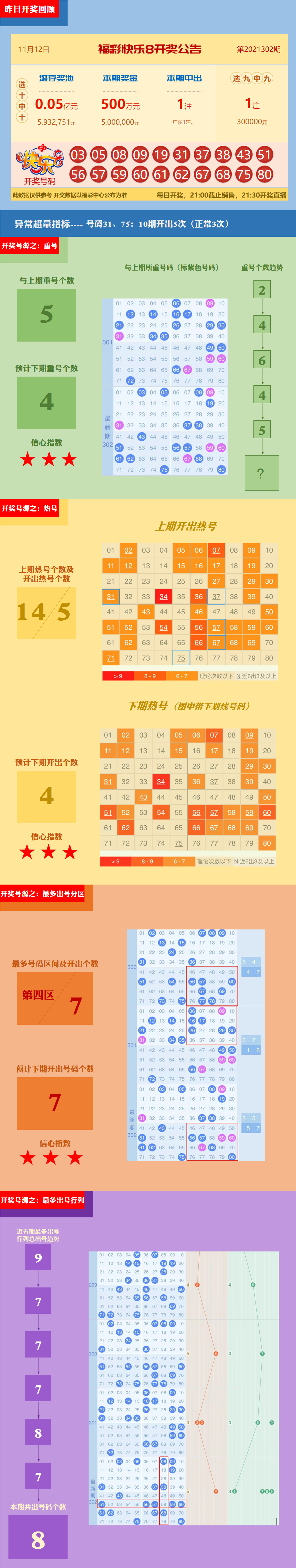 【中彩网-蔗姜】快乐8第303期分析