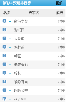 彩色之梦、彩兴民、大联盟、冻柠茶等专家双胆预测近7中6。