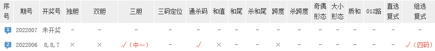 1月6日晚,福彩3D第22006期开奖,开出奖号8 8 7【最新推荐访问http://www.cmzj.net查看】