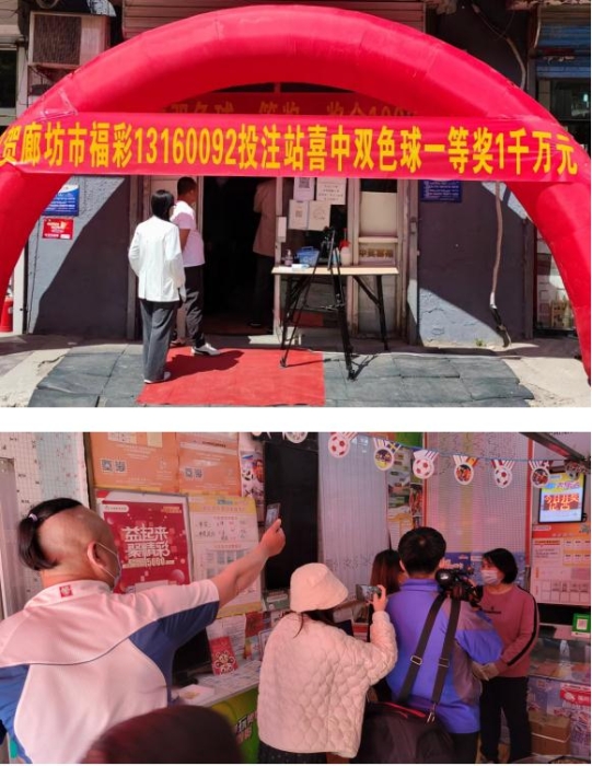 5月10日晚,双色球第2022052期,廊坊市安次区银河路13160092站中出一等奖1注,单注奖金1000万元。