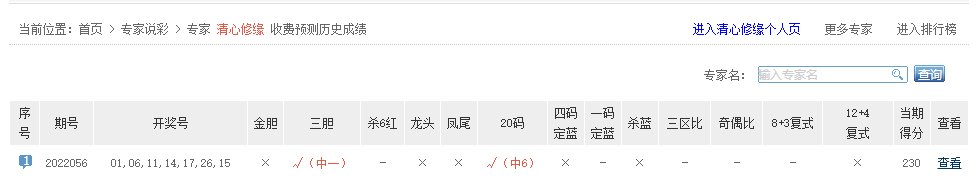 清心修缘、bz5858等专家中6红。