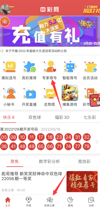 中彩网客户端用户,点击首页“专家荐号”快速入口或下导航“彩民之家”,查看快乐8精选方案,新用户首次充值还可享受专享福利。