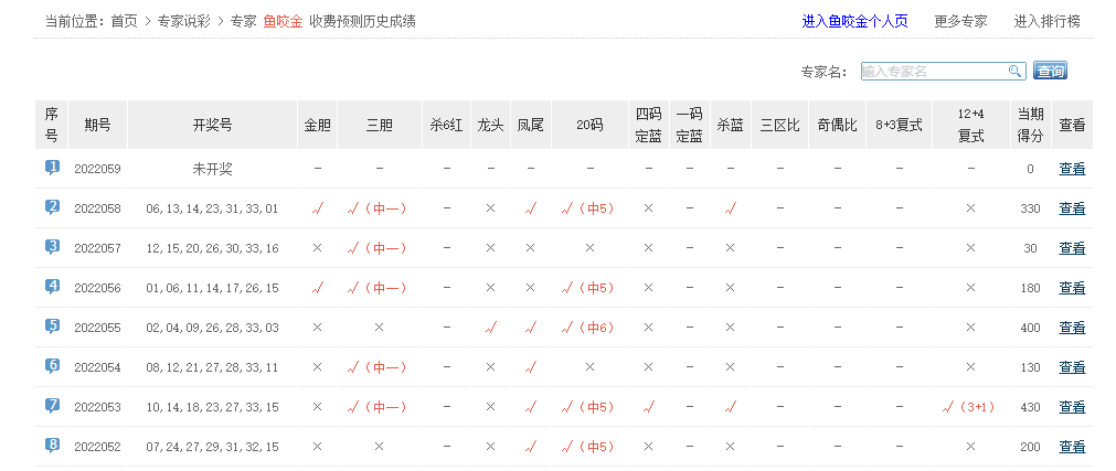 鱼咬金、非常零距离、大奖揭秘者、bz5858、幸运门、杀手独胆、yu3750758800、老宋看彩、天赐金码、zsl1688等专家命中5红。