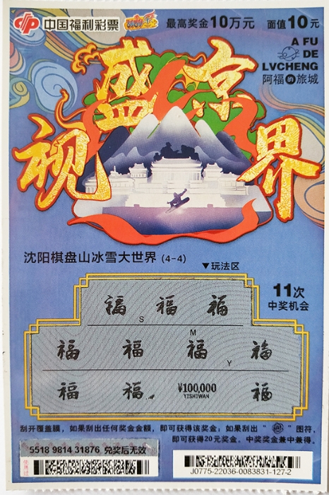 李先生平时并不经常购彩,但每次路过福彩销售站时,他都会买上几张刮刮乐彩票。福彩刮刮乐玩法多样,简单有趣,即开即兑,中不中奖当场就知道,这也是它倍受青睐的主要原因。此次,李先生购买的刮刮乐“阿福的旅城·盛京视界”在全省上市销售仅仅一个月左右,该玩法首次推出的四大票面分别选取“著名世界文化遗产-沈阳故宫、国际文化融合之景-沈阳世博园、世界自然名胜奇观-沈阳怪坡、辽宁冰雪名片-沈阳棋盘山冰雪大世界”作为主要内容,票面10元,一等奖奖金10万元。