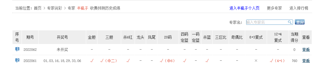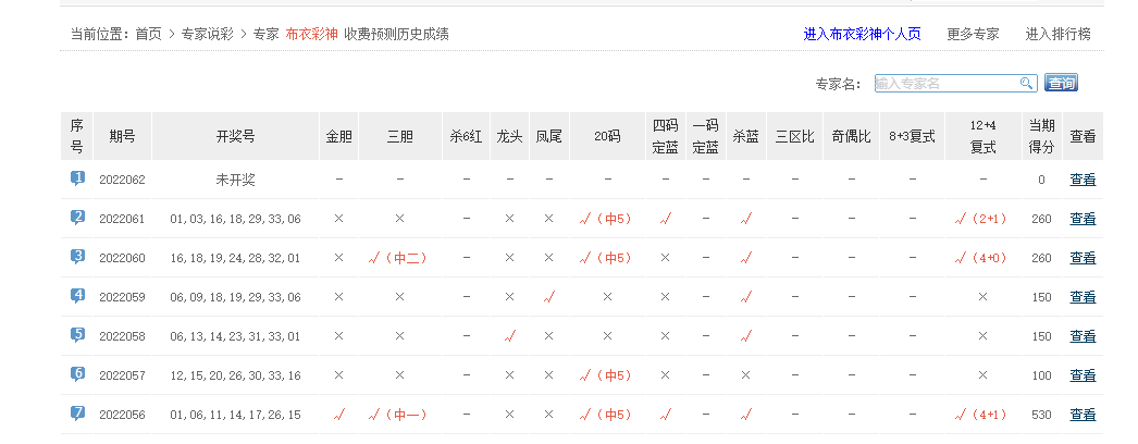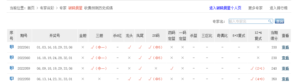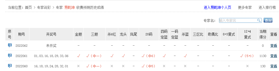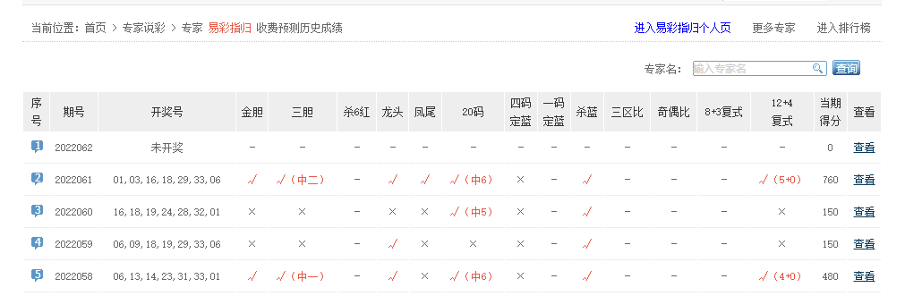 易彩指归、掘金人、紫气Dong来等专家命中6红。