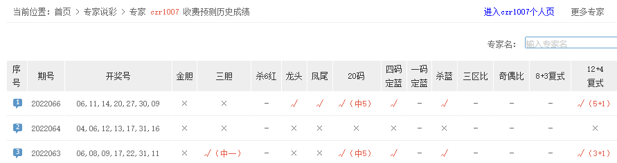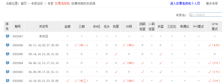彩票老司机、战神归来、AAA耀阳、啊怒人、不会改变等专家大底命中6红。